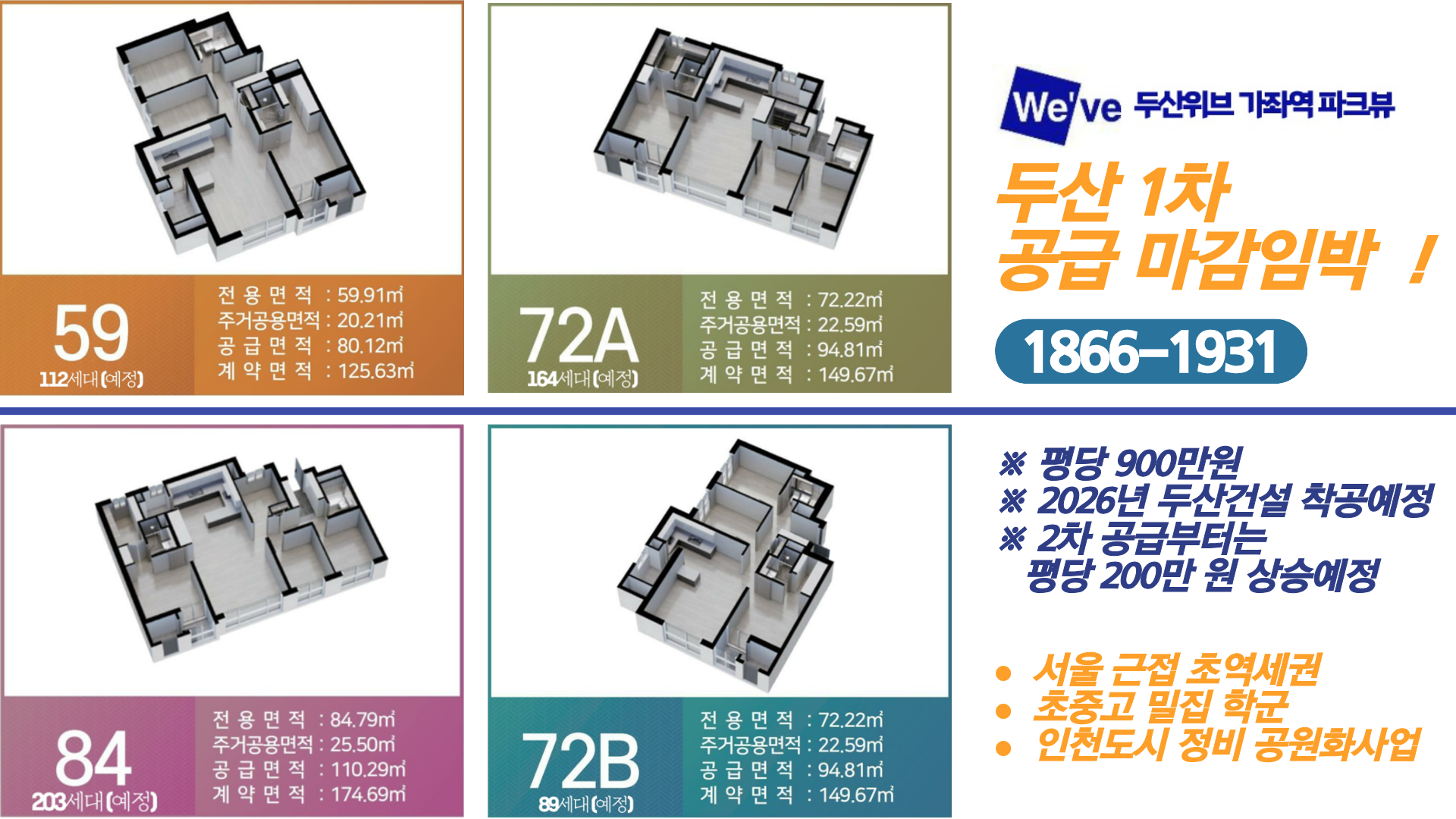두산위브 가좌역 파크뷰 1차 공급 마감임박 !